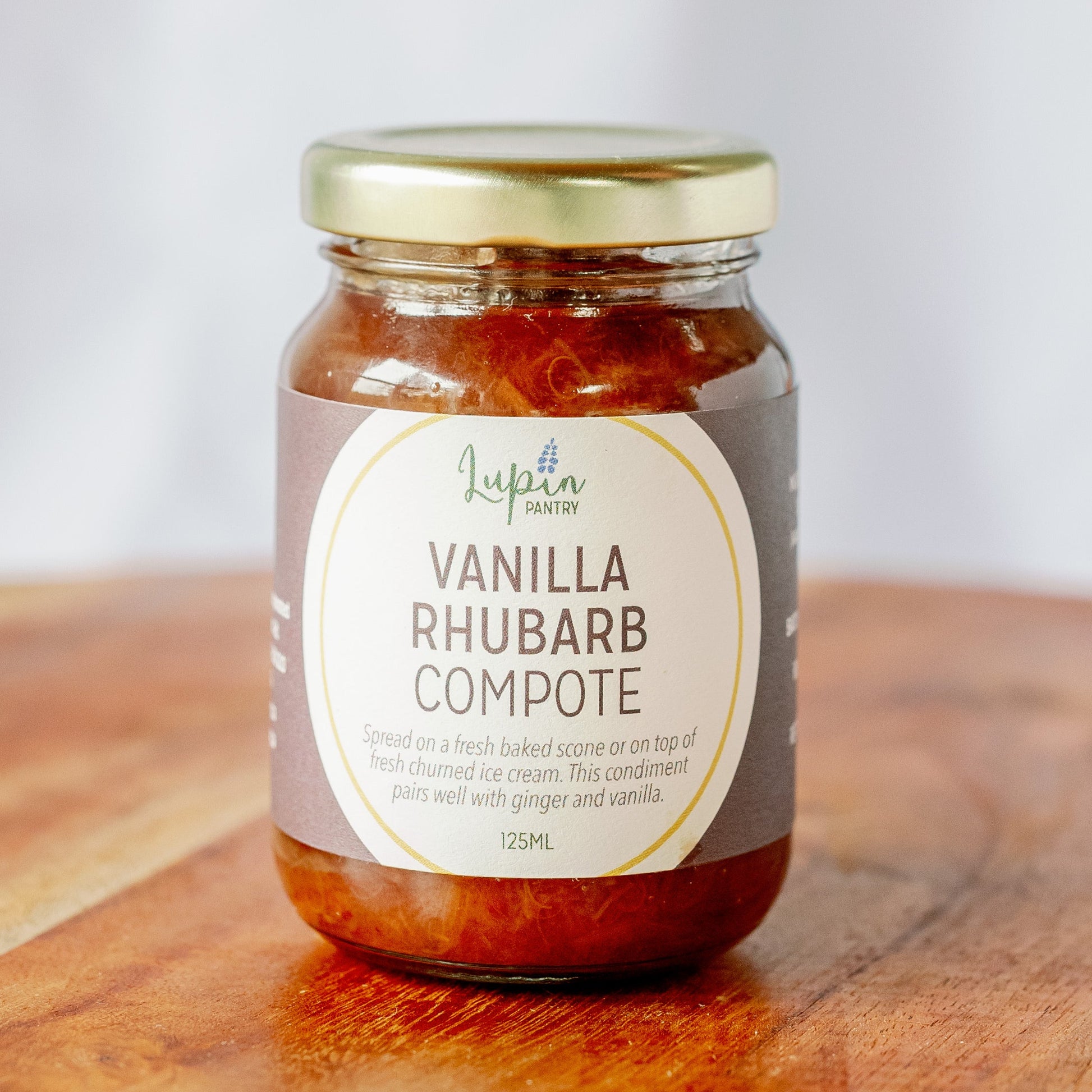 Spread on a freshly-baked scone or on top of fresh churned ice cream. This condiment pairs well with ginger and vanilla.
